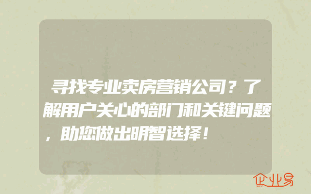 - 寻找专业卖房营销公司?了解用户关心的部门和关键问题,助您做出明智选择!
