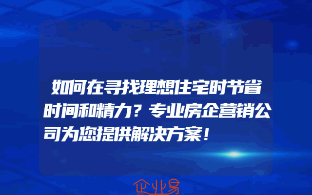 - 如何在寻找理想住宅时节省时间和精力?专业房企营销公司为您提供解决方案!