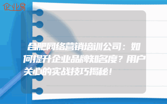 - 合肥网络营销培训公司:如何提升企业品牌知名度?用户关心的实战技巧揭秘!