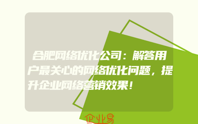 - 合肥网络优化公司:解答用户最关心的网络优化问题,提升企业网络营销效果!在当今数字化时代,网络优化已经成为企业发展的重要组成部分。作为一家专业的网络优化公司,我们致力于为企业提供最优质的服务,帮助他们解决最关心的网络优化问题,从而提升企业的网