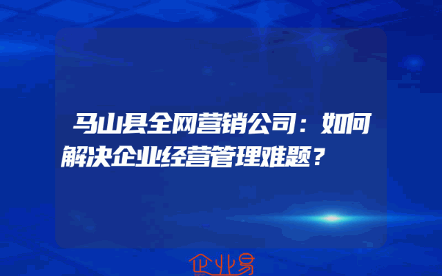 - 马山县全网营销公司:如何解决企业经营管理难题?