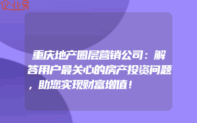 - 重庆地产圈层营销公司:解答用户最关心的房产投资问题,助您实现财富增值!
