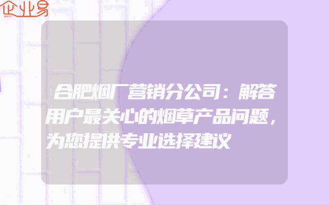 - 合肥烟厂营销分公司:解答用户最关心的烟草产品问题,为您提供专业选择建议