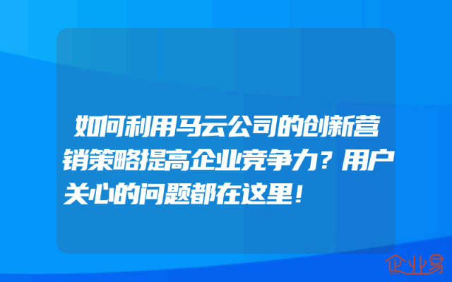 - 如何利用马云公司的创新营销策略提高企业竞争力?用户关心的问题都在这里!