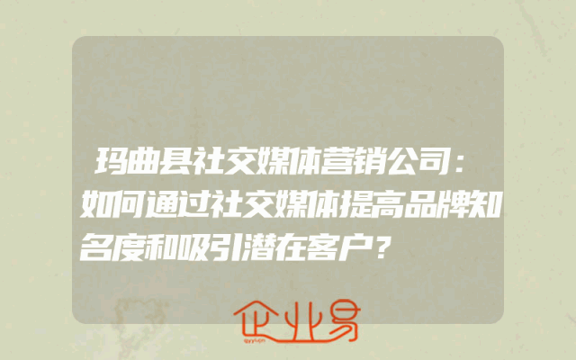 - 玛曲县社交媒体营销公司:如何通过社交媒体提高品牌知名度和吸引潜在客户?