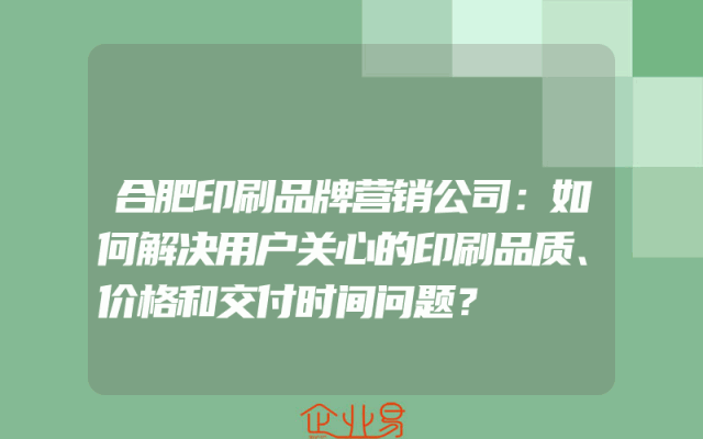 - 合肥印刷品牌营销公司:如何解决用户关心的印刷品质、价格和交付时间问题?