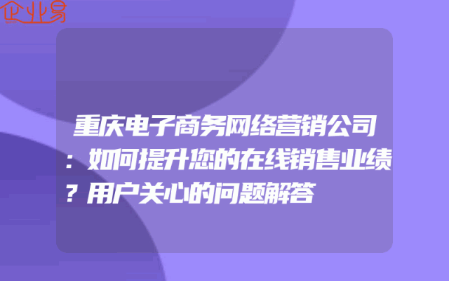 - 重庆电子商务网络营销公司:如何提升您的在线销售业绩?用户关心的问题解答