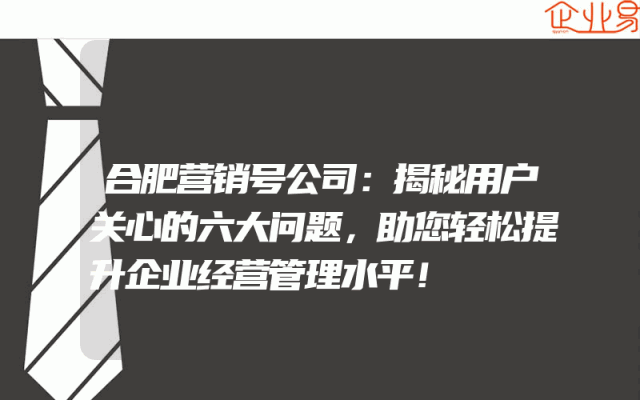 - 合肥营销号公司:揭秘用户关心的六大问题,助您轻松提升企业经营管理水平!
