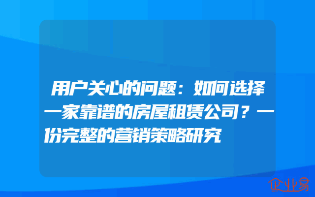- 用户关心的问题:如何选择一家靠谱的房屋租赁公司?一份完整的营销策略研究