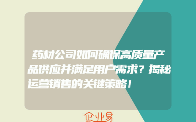 - 药材公司如何确保高质量产品供应并满足用户需求?揭秘运营销售的关键策略!