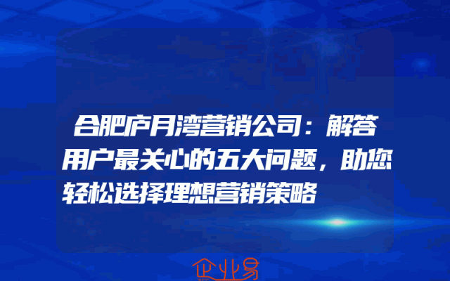- 合肥庐月湾营销公司:解答用户最关心的五大问题,助您轻松选择理想营销策略