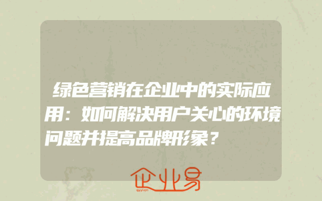 - 绿色营销在企业中的实际应用:如何解决用户关心的环境问题并提高品牌形象?