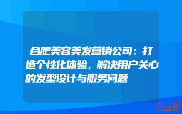 - 合肥美容美发营销公司:打造个性化体验,解决用户关心的发型设计与服务问题