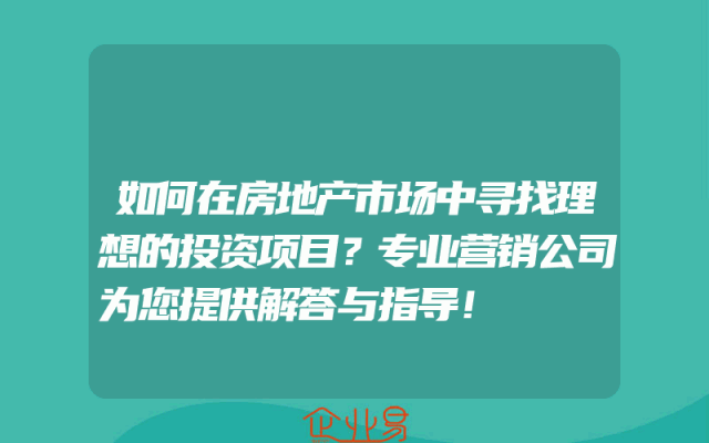 - 如何在房地产市场中寻找理想的投资项目?专业营销公司为您提供解答与指导!