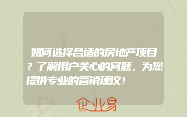 - 如何选择合适的房地产项目?了解用户关心的问题,为您提供专业的营销建议!