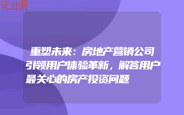 - 重塑未来:房地产营销公司引领用户体验革新,解答用户最关心的房产投资问题