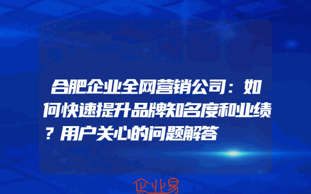 - 合肥企业全网营销公司:如何快速提升品牌知名度和业绩?用户关心的问题解答