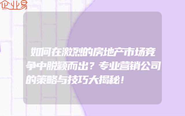 - 如何在激烈的房地产市场竞争中脱颖而出?专业营销公司的策略与技巧大揭秘!