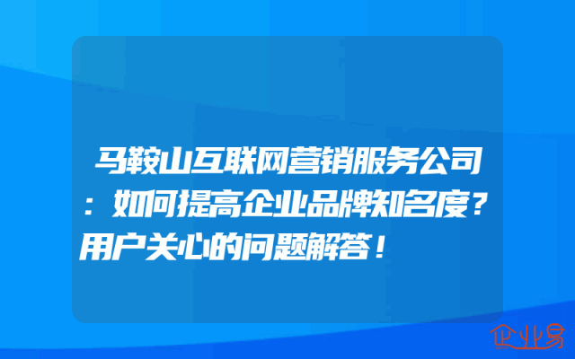 - 马鞍山互联网营销服务公司:如何提高企业品牌知名度?用户关心的问题解答!