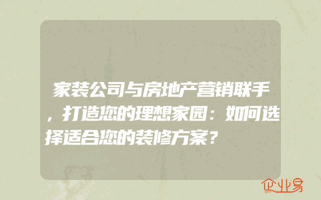 - 家装公司与房地产营销联手,打造您的理想家园:如何选择适合您的装修方案?