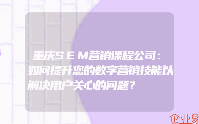 - 重庆SEM营销课程公司:如何提升您的数字营销技能以解决用户关心的问题?