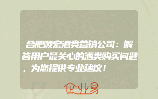 - 合肥顺宏酒类营销公司:解答用户最关心的酒类购买问题,为您提供专业建议!