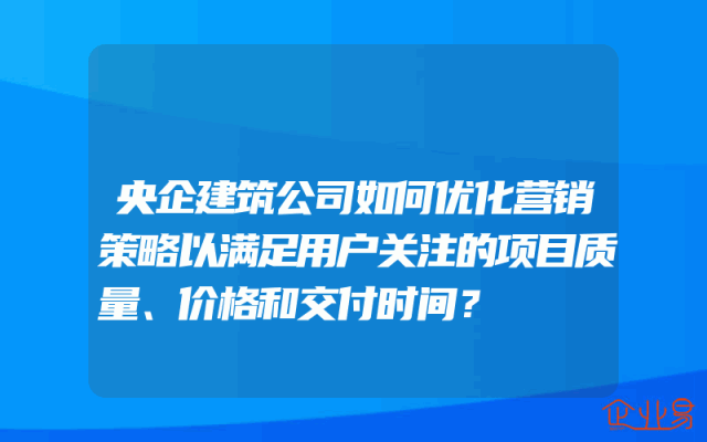 - 央企建筑公司如何优化营销策略以满足用户关注的项目质量、价格和交付时间?