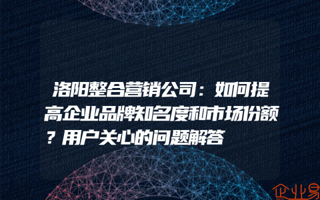 - 洛阳整合营销公司:如何提高企业品牌知名度和市场份额?用户关心的问题解答
