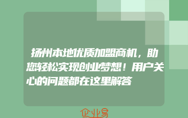 - 扬州本地优质加盟商机,助您轻松实现创业梦想!用户关心的问题都在这里解答