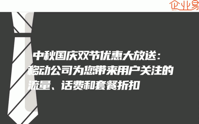 - 中秋国庆双节优惠大放送:移动公司为您带来用户关注的流量、话费和套餐折扣