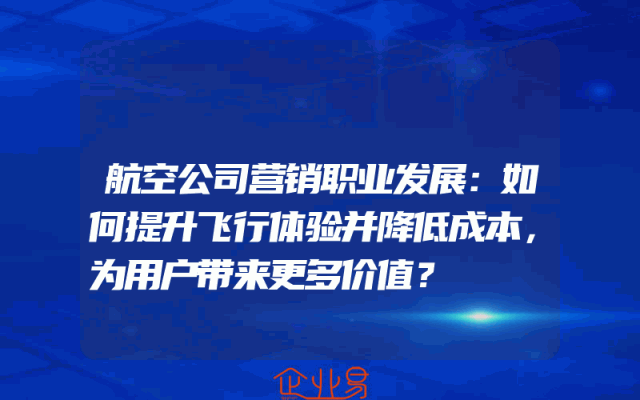 - 航空公司营销职业发展:如何提升飞行体验并降低成本,为用户带来更多价值?