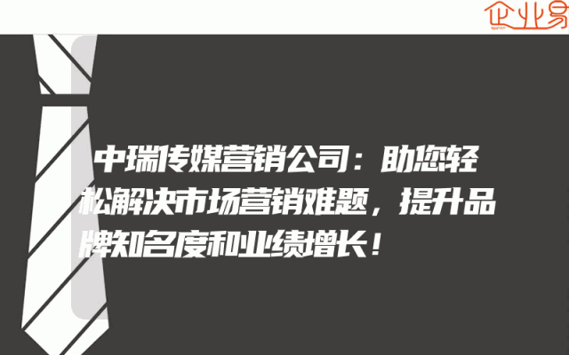 - 中瑞传媒营销公司:助您轻松解决市场营销难题,提升品牌知名度和业绩增长!