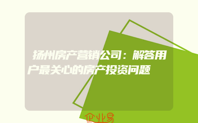 - 扬州房产营销公司:解答用户最关心的房产投资问题