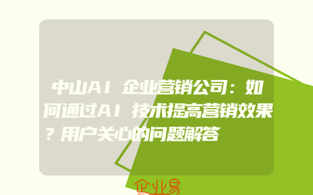 - 中山AI企业营销公司:如何通过AI技术提高营销效果?用户关心的问题解答