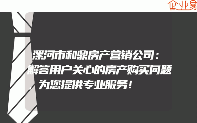 - 漯河市和鼎房产营销公司:解答用户关心的房产购买问题,为您提供专业服务!