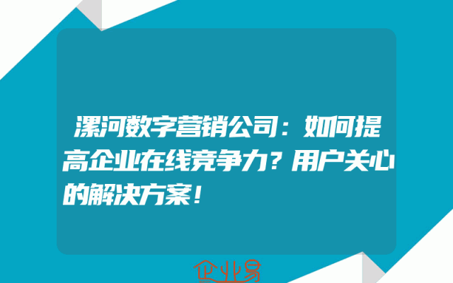 - 漯河数字营销公司:如何提高企业在线竞争力?用户关心的解决方案!