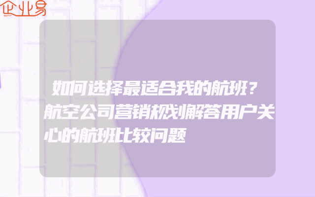- 如何选择最适合我的航班?航空公司营销规划解答用户关心的航班比较问题
