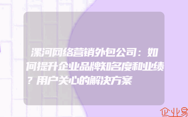 - 漯河网络营销外包公司:如何提升企业品牌知名度和业绩?用户关心的解决方案