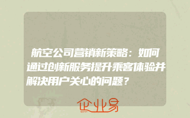 - 航空公司营销新策略:如何通过创新服务提升乘客体验并解决用户关心的问题?