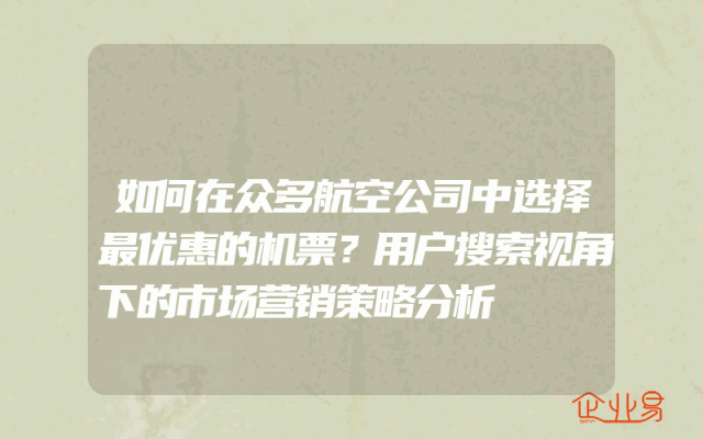 - 如何在众多航空公司中选择最优惠的机票?用户搜索视角下的市场营销策略分析