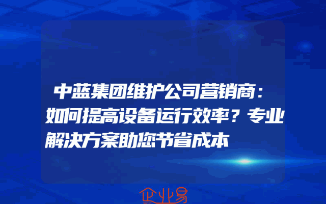 - 中蓝集团维护公司营销商:如何提高设备运行效率?专业解决方案助您节省成本