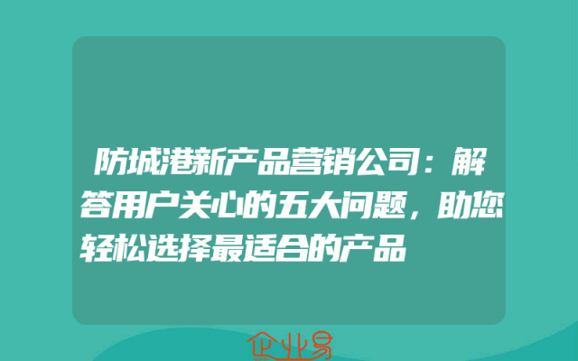 - 防城港新产品营销公司:解答用户关心的五大问题,助您轻松选择最适合的产品
