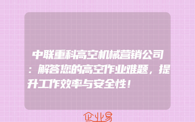 - 中联重科高空机械营销公司:解答您的高空作业难题,提升工作效率与安全性!