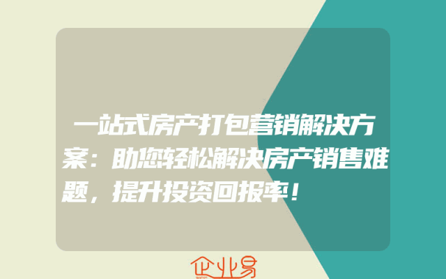 - 一站式房产打包营销解决方案:助您轻松解决房产销售难题,提升投资回报率!
