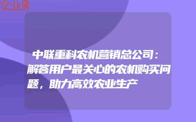 - 中联重科农机营销总公司:解答用户最关心的农机购买问题,助力高效农业生产