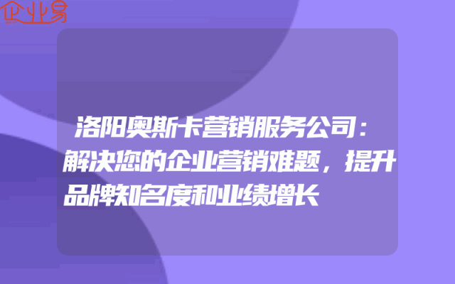 - 洛阳奥斯卡营销服务公司:解决您的企业营销难题,提升品牌知名度和业绩增长