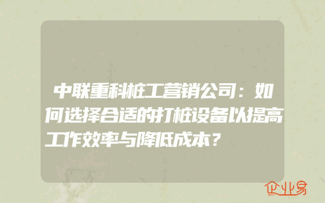 - 中联重科桩工营销公司:如何选择合适的打桩设备以提高工作效率与降低成本?