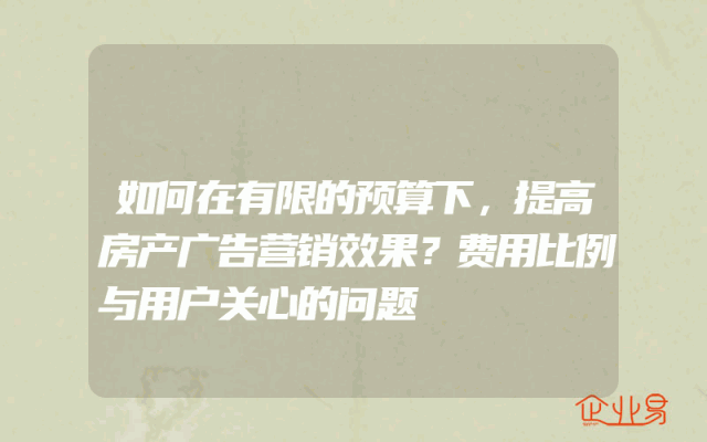 - 如何在有限的预算下,提高房产广告营销效果?费用比例与用户关心的问题