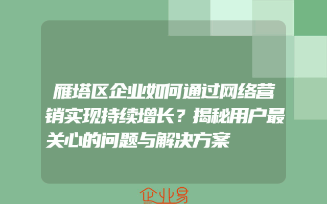 - 雁塔区企业如何通过网络营销实现持续增长?揭秘用户最关心的问题与解决方案