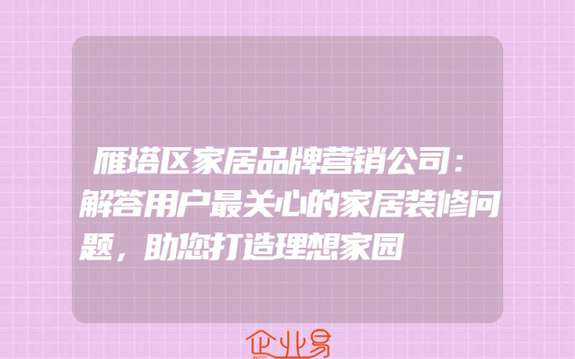 - 雁塔区家居品牌营销公司:解答用户最关心的家居装修问题,助您打造理想家园